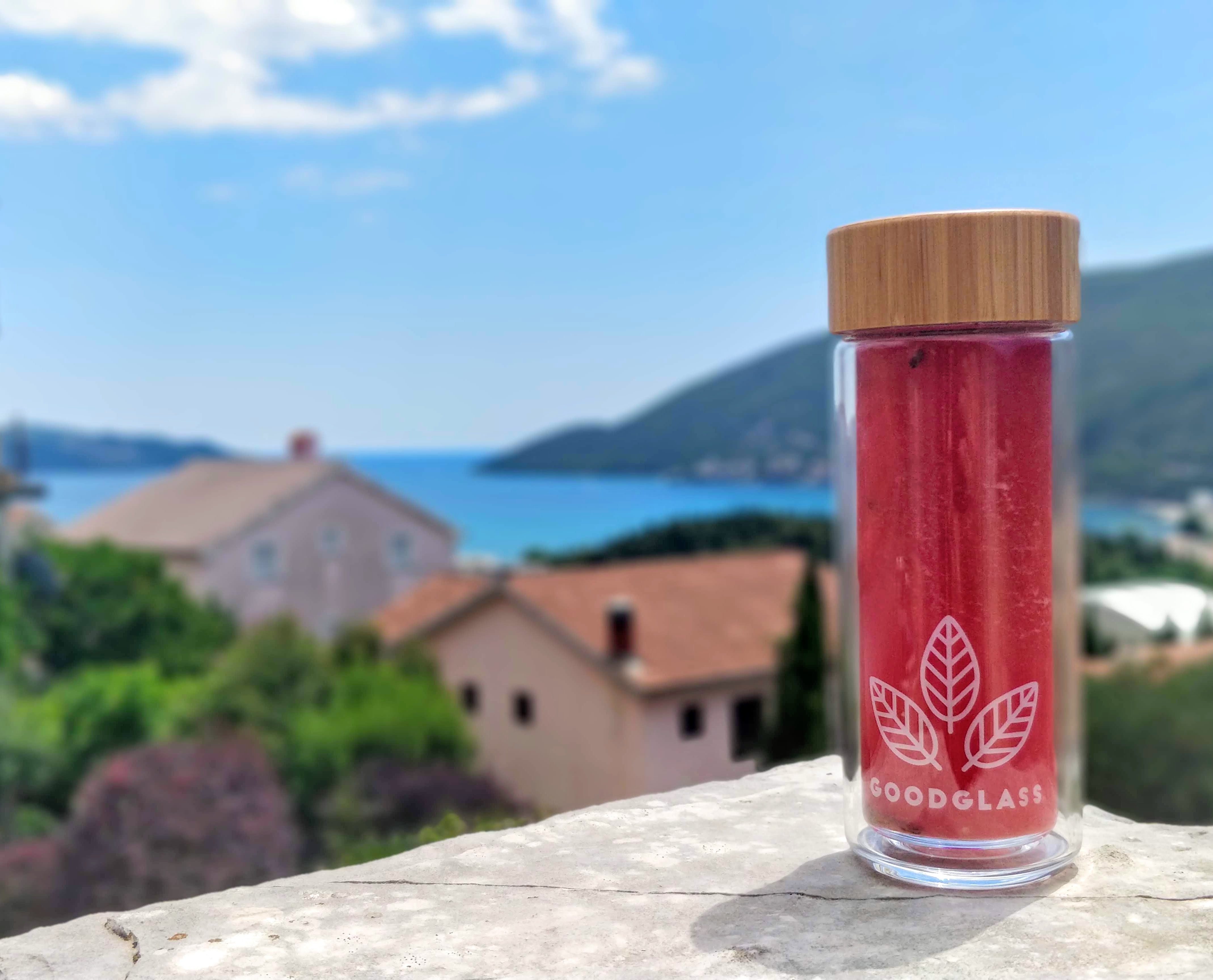 5. Przelewamy do szklanej butelki GoodGlass, dodajemy kilka kostek lodu i gotowe! Smacznego!
